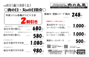 新着情報 精肉直売店 取扱商品 卸売り 会社案内 お問合せ 新着情報 9のつく日は肉の日・0のつく日は丸(萬)の日! 2026年1月7日 新年あけましておめでとうございます! 本年もよろしくお願いいたしますm(_ _)m 1/9(金)・1/10(土)の特売案内です。 オススメ☆彡 切落しで食べ比べ(^^♪ 滋賀県産近江牛と宮城県産仙台牛を食べ比べできます! この機会に是非!! 皆様のご来店お待ちしております 投稿ナビゲーション < クリスマス商品・年末商品 御予約承り中