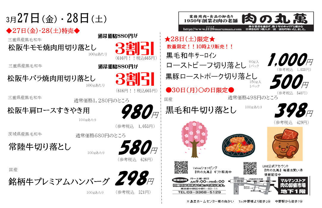3/27(金)・3/28(土)特売案内